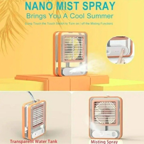 USB Rechargeable: Built-in 1500mAh lithium battery and USB port, make the small Silent cooling fan easy to be charged. Coming with a type C USB charging cable, fully charged around 2 hrs, and wireless working time 2-6hrs.Around 6hrs working time only for fan function, around 2hrs working time for fan + misting + LED night light functions. Enjoy cool airflow from our cordless fan indoor and outdoor.
